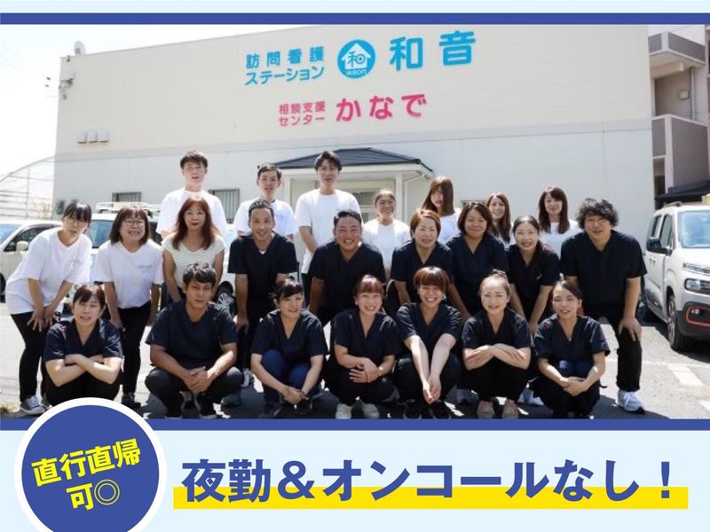 仕事内容 ✧˖ ✧˖ 和音で働くメリット5選! ˖✧ ˖✧ ✅ 夜勤&オンコールなし! ✅ 残業ほぼナシ&時短勤務相談OK! ✅ 社用車通勤&直行直帰OK! ✅ 訪問エリアは固定で1日5〜6件程度 ✅ 業界高水準!2年目で年収600万の実績も 夜勤なし。介助なし。  ̄ ̄ ̄ ̄ ̄ ̄ ̄ ̄ ̄ ̄ “聴く看護”という働き方。  ̄ ̄ ̄ ̄ ̄ ̄ ̄ ̄ ̄ ̄ ̄ ̄ やっぱり、看護師でいたい。 でも、家事や育児もあるし、 夜勤や体力的な負担が不安── そんな方にこそ知ってほしい、 わたしたちの訪問看護。 精神科に特化したこの職場では、 身体介助ではなく、 利用者様の話に耳を傾ける “聴く力”が活きます。 訪問は社用車で直行直帰OK。 夜勤はなく、残業もほとんどありません。 ブランクがある方も、 先輩同行から始めるのでご安心ください。 自分らしい暮らしを大切にできる 看護師としての日々を もう一度、ここで。 ✧˖ ✧˖ ✧˖ ✧˖ ✧˖ 仕事内容 ˖✧ ˖✧ ˖✧ ˖✧ ˖✧ 精神科に特化した訪問看護です。利用者様の「心」に寄り添いながら、安心して生活が送れるようサポートします。 ❖具体的には… ・利用者様宅への訪問 ・服薬管理・支援 ・病状観察・リハビリ ・精神・心理的看護など心のケア ・自立した生活の支援・看護 ・バイタルチェック・健康確認 ・ご家族や医療機関、地域との連携 など ◎訪問は1日5~6件程(固定エリア制) ◎身体介助など介護業務は一切ありません ◎直行直帰でタブレットから業務報告OK ❖利用者様は… 利用者様は、精神障害を抱える60歳未満の方が中心です。お話ができる方が多く、会話を通じて少しずつ信頼関係を築いていきます。 ❖安心して訪問するために 訪問は基本的に1名で行いますが、利用者様の状況や特性に応じて、 ・男性スタッフのみでの訪問 ・2名体制での対応 ・相性や経験をふまえた担当調整 など、チームで柔軟にサポートできる体制を整えています。 ❖“聴く力”が活きる看護 最初は先輩スタッフが同行し、患者様の特性や接し方を丁寧にお伝えします。会話を通じて小さな変化に気づくことが大切です。入退院の頻度が減ったり、社会復帰される姿、そして「ありがとう」の言葉が、大きなやりがいにつながります。 ✧˖ ✧˖ ✧˖ スタッフインタビュー ˖✧ ˖✧ ˖✧ ❖30代・女性/子育てママ 子育て中のママさんナースが多くて、子どもの急な発熱や行事があるときも、「お互いさま」で助け合っています!研修やミーティングもオンラインOKなので、すきま時間で参加できるのもありがたいです。 ❖40代・女性/子育てママ 精神科は初めてでドキドキしましたが、先輩の同行から始められたことで安心でした。心を開いてくださる患者様が多く、不安はやりがいに変化。いまは自分のペースで訪問しながら、信頼関係が深まる喜びを感じています! ❖30代・男性/看護師歴10年(精神科経験有) 精神科の病棟経験はありましたが、訪問看護は初めて。和音は精神科の中でも症例数がとても多く、毎日が学びの連続です。内科や外科出身の看護師も在籍していて、精神科以外の症例も、気軽に相談できるのがありがたいです。 ・。'.・。'.・。'.・。'.・。'.・。'