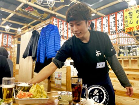 仕事内容 ★仕事の詳細 まずはホール業務から。 慣れてきたら調理もマスターしていきます。 ・ホールでの接客業務 ・キッチンでの調理業務 →セントラルキッチンがあるので仕込みなどのシンプルな調理が中心です ・アルバイトさんの育成やシフト管理など ・新メニューの考案 ・業務改善の提案 新しい事を決める時はみんなで話し合っています! ★「海鮮屋台おくまん」について 「海鮮屋台おくまん」は“大衆”がコンセプト。 漁港から仕入れた刺身と屋台の天ぷらが名物! 店内には大漁旗などが飾られており漁師気分が味わえるお店です♪ 誰もが気軽に立ち寄れて、お客さまとスタッフの距離が近くとっても元気な雰囲気も自慢。 一度卒業したスタッフが常連さんに惜しまれたのが忘れられず後に戻ってきた例も。 ★便利な「夕方スタート」の勤務体系 昼間の予定に響かない16:00スタート! 「買い物」「美容室」「銀行」「役所」 「テーマパーク」「推し活」「友達と遊ぶ」などなど・・・ 正社員としてフルタイムで働いても、 プライベートとの両立がしやすいのが魅力◎ お休みもシフトの希望が通りやすいのが自慢。 有休を組み合わせて10連休取得の実績もありますよ! ★「休みたい」への理解が当たり前の会社に お休みは月8日を必ず確保。 シフトは希望が通りやすく、用事との両立がしやすい勤務体系です。 柔軟に働ける理由は、近隣の店舗同士でヘルプをし合えるから。 店舗をまたいで人間関係ができるので、事情を理解してくれる味方も多い環境! もちろん連休も夢ではありません。 シフトと有休を組み合わせて10連休取得の実績もありますよ! ★そろそろ腰を落ち着けて安定したい方にも 「単発やかけもちで働いてきたけど、 今後は正社員として安定したい」 そんな希望も手遅れではありません! 10~50代まで幅広い仲間がおり、 入社の経過はみんな様々。 フリーターから正社員入社した方も多数います! 飲食店未経験でも大丈夫。 研修でイチから覚えられますし、 初任給から月給30万円~をお約束します◎