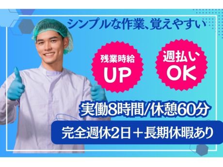 仕事内容 仕事について 医薬品や化粧品の容器を専門に製造している メーカー企業でのお仕事です。 プラスチック容器やアルミ包材の成型マシンへ ・原料の投入 ・完成品を袋に入れる などの業務をお願いします。 ◎具体的には◎ ・成型マシーンへの原料の投入 ・製品の箱詰め ・不良品の一次検査 など 複数のマシンに対して時間を確認しながらの作業です。 ☆1日の流れ☆ ・出勤:私服から作業服に着替える。クリーンルームに入るための準備 ・午前:朝礼。前の時間帯の引継ぎ事項や注意点、本日の生産予定数を確認 ・昼食:1時間の休憩。作業服から私服に着替えて休憩。 ・午後:作業開始。作業開始前に担当ラインの変更や変化点があれば対応。 ・終了:製造マシンは24時間動き続けるので、次の時間帯の交代者に引継ぎをして終了。 ◎職場環境◎ ・1年中空調完備!20度前後の環境です◎ ・食堂あり ・弁当持込OK(食事スペースあり) ・仕出弁当あり ・自動販売機あり ・休憩室あり ・喫煙所あり アピールポイント *シンプルなカンタン作業! *コツコツと作業をすることが好きな方にオススメ! *馴染みのある日用品だからイメージしやすい! *未経験からでもスタートできる! *週払いも可(規定あり) ☆勤務1年~3年の間で直接雇用契約への移行も可能です☆ 分からないことなどあれば、 先輩スタッフがフォローするので、 未経験でも安心です。 実際現場で働くほとんどの先輩スタッフは 未経験からスタートしています◎