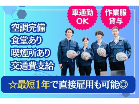 【保険制度】 雇用保険、労災保険、健康保険、厚生年金 待遇・福利厚生 【福利厚生】 *===== 待遇について =====* ・日払いOK(規定あり) ・週払いあり(規定) ・社会保険完備 ・交通費規定支給 ・制服一式、保護具一式貸与 (クリーニング代会社負担)