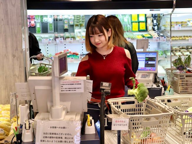 青果スーパーでのレジスタッフ