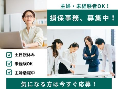 仕事内容 保険金お支払の担当社員のサポート業務 未経験の損保事務も一般事務のご経験を生かして働いてみませんか! 損害サポート部門は事故にあわれたお客さまに保険金のお支払いを通して、事故を解決し、お客さまに「安心と安全」を提供している職場です。保険金お支払担当社員のサポート業務です。損害保険の資格は不要です。一般事務の経験を生かして、電話、データ入力、手紙の仕分け等で一緒に働きませんか? 具体的なお仕事内容 ・郵便物の仕分けや書類のファイリング等の庶務業務 ・お客さまや代理店からの電話を担当者に取り次ぐ ・関係者へ書類の督促や現状確認のために電話をかける ・パソコンを使用して、保険金お支払に関するデータを入力 等 頼れる存在がそばにいる!対応に困ること、不安を感じることがないように、丁寧にサポートしていきます。 お仕事を始めたばかりの時は、分からないことがあって当然です。「どうしたらいいんだろう?」と思ったら、すぐに質問できる環境を整えています。指導担当者がしっかりフォローする体制があるので、損保事務が未経験の方でも一般事務職のご経験があれば、安心してお仕事を始めることができますよ。 9時~17時・週5日のフルタイム 仕事とプライベート両方大事にできます 40代~50代の方も活躍中の職場です。勤務時間は、実働7時間(昼休憩1時間)で、週5日。お子さんの学校行事やご自身の通院などの休暇、お子さまの急な発熱等での緊急なお休みも”お互いさま”の気持ちでフォローしあうチームワークのよい職場です。有給休暇は半日単位・1時間単位で取得できます。 あなたの”今”にあった働き方を叶える! 不動産・医療事務等の他業種での経験を活かして、派遣事務・事務パート・事務アルバイト等で勤務されていた方も、未経験だった損保事務のフルタイムで活躍しています。未経験からでも大丈夫!新しいスタート、一歩を踏み出す勇気があれば、成長と共に素晴らしい経験が待っています。