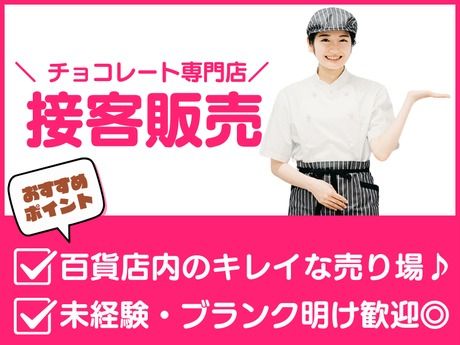 <★高時給1300円◎百貨店勤務>有名チョコレート専門店で洋菓子販売★接客・包装♪