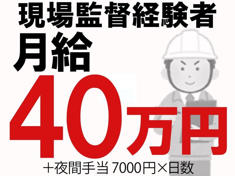【保険制度】 雇用保険、労災保険、健康保険、厚生年金 待遇・福利厚生 【福利厚生】 交通費全額支給 夜間手当(夜間の工事の場合1日7,000円)