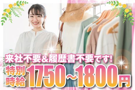仕事内容 ■流行を程よく取り入れた上品でフェミニンなブランドアイテムの接客販売 洋服・雑貨の販売をお願いします! ・店頭での接客 ・納品業務、商品の管理 ・売場ディスプレイ ・店内清掃 など。 トレンドを発信する仕事に興味がある方にオススメです! ■おしゃれが好きな方必見!好きなものに囲まれて仕事ができる 特別な資格や経験必要なし! 働きながら流行りのスタイルやアイテムの知識が身につきます♪ 接客のお仕事なので、 知って損はないマナーや丁寧な振る舞いも身につけることができます! まずは笑顔で丁寧な挨拶ができればOK! ■20代~40代の女性スタッフ活躍中!週4日からOKなので家庭と両立できます フリーターさんはもちろん、 子育てがひと段落した方や家事育児と両立して頑張る方が多数活躍中! 家庭と両立しやすいシフトで無理なく働くことができます。 洋服が好きな方や人と接することが好きな方におすすめのお仕事♪ 好きなことを仕事にしてしっかり稼ぐことができるので、 ストレスなく充実した生活を過ごせます◎ ■来社&履歴書不要!電話でお仕事のご紹介が可能です。 応募後、まずはこちらから電話でご連絡いたします。 その際にご都合が良い日時をお伝えいただければ その日時に改めて電話で連絡いたします。 家事の合間や仕事が休みの日など、 あなたの都合のよいタイミングをお伝え下さい。 お電話で業務内容の説明やあなたの希望をおうかがいしたうえで 希望のお仕事をご案内いたします。