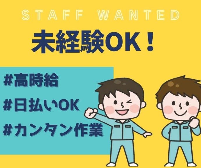 仕事内容 \年間休日126日★未経験OK!/ 空調完備の工場内(クリーンルーム)で、 調味料用キャップの袋詰め作業をお願いします! 機械から調味料のキャップが流れてくるので、それを袋へ詰めていくシンプルなお仕事です。 ▼具体的には ・機械から出てきたキャップの袋詰め作業 ・製品の梱包作業 ★重量物ほぼなし ★空調完備で年中快適 ★クリーンルーム内で清潔 ★コツコツ・モクモク作業 難しい作業はなく、軽作業が中心です。 集中して作業したい方にピッタリ♪ ■職場の特徴… ・20~50代の男女活躍中♪ ・難しい対応はなし!先輩スタッフが丁寧にお教えします。 ・未経験大歓迎! ■身だしなみについて... クリーンルーム内でのお仕事のため、 ・マネキュアNG ・ピアスNG ・エクステNG ・つけまつげ/長いネイルNG ※化粧は薄化粧であればOKです。