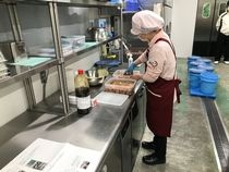 高速道路の休憩施設で提供する料理の仕込みスタッフ