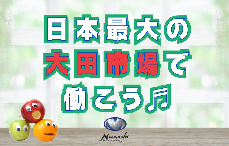 仕事内容 ▶ 約2ヶ月の短期勤務! ◀ ⏩未経験・初心者歓迎! ⏩日勤のみ!9時~18時勤務! ⏩時給1300円!高収入! ⏩スキルアップ可能!資格支援制度あり ⏩無料ドリンクサーバー・ロッカー完備! ――――――――――――――――★。・ << ✨仕事内容✨ >> 大田市場内にて、青果物の手荷役 ・ラベル貼り・運搬作業をお任せします。 ■ 青果物の手荷役作業 ■ 荷物への宛名シール貼り付け ■ 青果物の受け取り・運搬補助 など ――――――――――――――――★。・ << ✨ココが求人の魅力!✨ >> ✅大手企業ならではの「厚待遇」をご用意! 昭和36年創業の安定企業だからこそ、 正規職員と同様の手厚い待遇で 安心して長く働ける環境です。 ✅9時~18時の日勤固定!完全週休2日制! 固定シフトで、毎日の生活リズムが整います。 日中の勤務なので、 プライベートの予定も立てやすく、 充実した毎日を送れます。 ✅スキルアップを応援!資格取得支援! 手に職をつけたい方、 キャリアアップしたい方の意欲を応援! フォークリフト免許の取得支援制度があります。 (条件等、面接時にご相談ください) ✅約2ヶ月間の限定募集! 短期間で高時給1900円を稼ぐチャンス! 日勤なのでプライベートとの両立も◎ ――――――――――――――――★。・