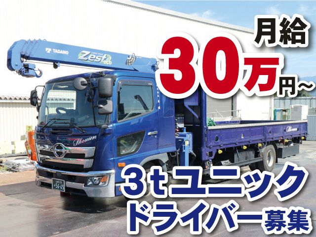 【南アルプス市】正社員3tユニックドライバー募集!主に山梨県内エリアでの配送業務
