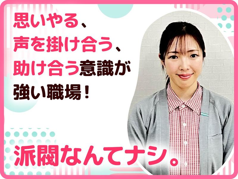 仕事内容 ◆:*:☆:*:◆ デイサービスでの業務。 ◎生活支援(入浴、食事補助ほか) ◎リハビリのサポートや体操指導など ◎利用者様の軽自動車での送迎 ※わからないことがあれば気軽に、 遠慮なく質問でき風土です。 ※送迎が難しい場合はご相談ください、 業務から外すことも可能です。 【資格がなくても大丈夫!】 入社後オリエンテーションやOJT、 月に1回の研修や全体MTGがあり、 資格取得支援やセミナー参加費補助ほか 手厚いフォロー体制が万全です! ★- 従業員の8割を占めるパートが原動力、主役 -★ はじめまして、入社4年目、 介護スタッフの梅川です! 私たちはデイサービスで 質の高い生活リハビリを提供しています。 社長は柔道整復師で鍼灸院も経営しており 私たちは利用者様の様々な 「できるようになりたい!」という 希望や意欲を叶えて 差し上げることに一生懸命。 もちろん、生活支援も利用者様 ひとり一人に寄り添って、 一般的なマニュアルに縛られない サービスで喜ばれています。 従業員70名のうち8割を占める パートスタッフがそれぞれ自分で考え、 提案できる、主体的に動ける。 その結果かもしれません。 利用者様とのお付き合いが 人間としての絆になっています。 ★- 通り一遍ではなく、絆を結ぶお付き合い -★ 私自身にも貴重な体験があります。 ある朝、玄関のチャイムが鳴って 聞き覚えのある名前を告げられました。 以前に通所されていた女性の娘さんです。 「母からが亡くなったので、 ぜひ通夜に来ていただけないだろうか」 というお申し出。 「あなたに良くしていただいていると 毎日聞かされていました」 「亡くなったことを伝えないと 母は悲しいだろうし、私自身も後悔する」 と…。 日々の話を思い返して私の自宅を 探し当ててくださったようです。 これまで介護の仕事をしていて 初めてのことで、やってよかったと 心から思える出来事でした。 これからも利用者様が来てよかったな、 楽しかったなと思える、笑顔になる、 そんな支援、お付き合いを続けていきます。 ★- 子育てママや育児のベテラン、経験が活きる -★ スタッフの数には余裕があって、 人を気遣う、助け合える環境だと思います。 以前の職場は派閥があったり、 誰かの機嫌で仕事の流れが変わったり…。 ここは人間関係のストレスがないどころか みんな自ら考えていろいろ提案できるし、 自然と仕事のフォローがし合える。 子供が体調を崩して休むときも、 「気にしないでね、お互い様だから」 みたいなスタッフばかり。 次の日は「子供、大丈夫だった?」って 自分のことのように気にしてくれる。 本当にありがたいですね。 子育て中の方には最適な環境なので、 お勧めしたいと思います。 食事や入浴など、日常のサポートは、 利用者様のペースに寄り添う大切な時間です。 子育てを通して学んだ 「相手を思いやる気持ち」を、 この仕事にも活かしています。 また私は最近パートから社員になりました。 ずっと頑張ってみたい、働きやすい、 そう思えるからに他なりません。 あなたも一緒に利用者様の 生活の質を高める、喜んでいただく、 笑顔になれる居場所をつくる。 そうしてたくさんの方々の人生を より良きものにしていきましょう。