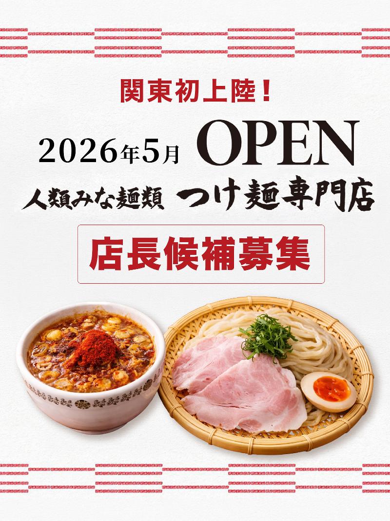 仕事内容: 関西で行列必至の名店。つけ麺の"東京初進出"の店舗になります! 活躍の舞台は、『人類みな麺類』、その東京初進出となる「つけ麺専門店」FC店の運営に、挑戦してみませんか? お店は、神保町で5月にオープン予定。調理や提供などの日常業務はもちろん、オペレーションを構築したり、新メニューを開発したり、売上アップの施策を考えたり……。店長候補として、幅広い仕事をお任せします。 上から「このやり方で」なんて細かい指示が飛んでくることはありません。ご自身の経験やアイデアを活かし、イチから店舗を作っていけます。「こうした方がいいな」という工夫が、売上につながる面白さも味わえますよ。自分の力でお客様をうならせる、大きな手応えも感じられるでしょう。 当社の飲食事業はまだ小規模だからこそ、あなたの頑張りが事業拡大に直結します。将来的にはキャリアアップのほか、自社ブランドの拡大といった大きなフィールドでの活躍も可能です。 業務内容 ・調理・接客など店舗運営全般 ・店舗オペレーションの改善・効率化 ・売上管理・数値分析 ・食材の仕入れ・在庫管理 ・オペレーションマニュアルの更新・整備 ・スタッフの指導・育成、シフト管理などの労務管理