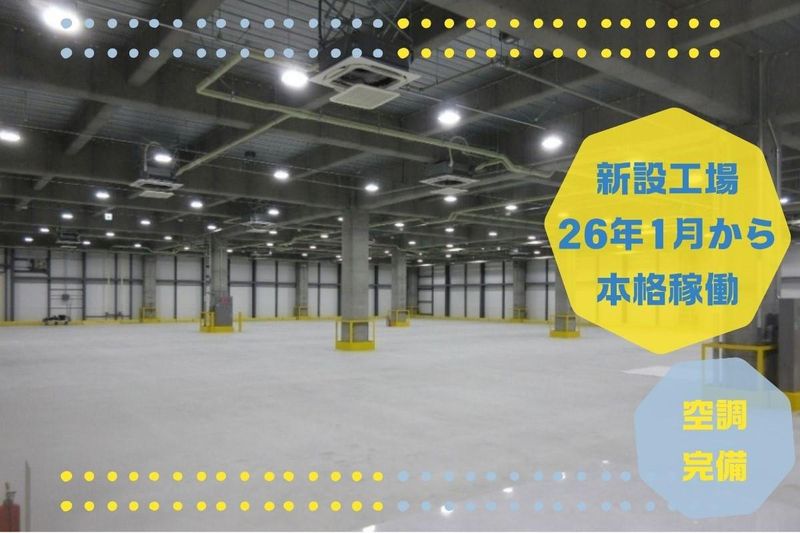 職場環境 2026年1月にオープンする新築工場です! 空調完備の快適な空間で、スタートラインが同じ 同期の仲間たちと一緒に働き始められます。 休憩室や食堂、個人ロッカーなどももちろん完備。 ピカピカの環境で気持ちよくお仕事できます。