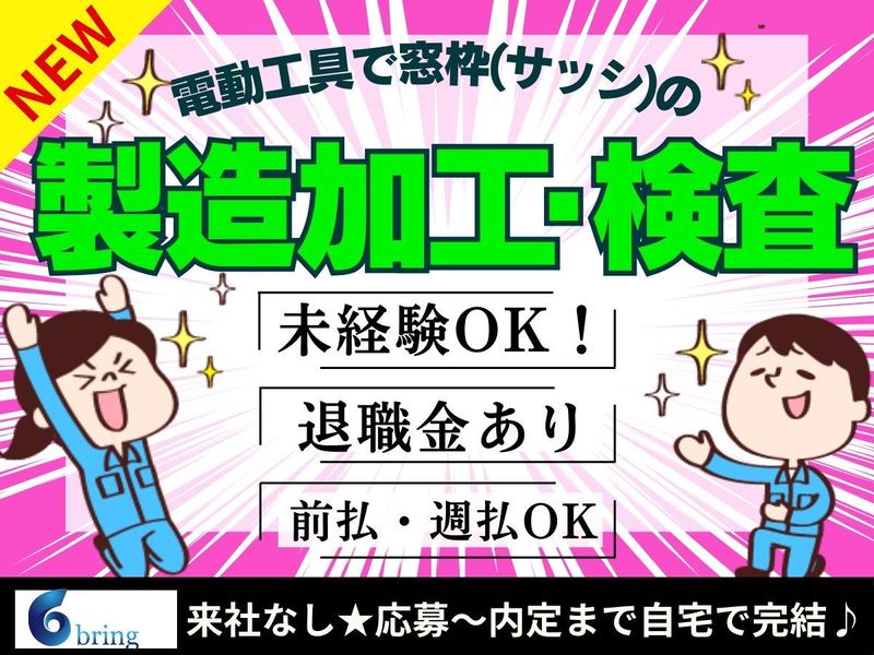 仕事内容 詳細は下の動画をチェック! https://youtube.com/shorts/8Gi9h3Fb_-M?feature=share (約60秒、コピペしてご覧ください) - 実家を出て無料の寮で自立できる。 月収28~30万円でしっかり稼げる。 工場経験が活きる。 ======================= ■ 仕事内容 ======================= 【住宅用窓枠のモノづくりです】 ◆ 電動工具を使っての ネジ締め ◆ 機械に部品をセット⇒ボタンを押す ◆ 完成した製品の検査や梱包 <シンプルな作業の繰り返しです!> → 覚える事も少なめでシンプル作業! → 一度覚えれば、あとは同じ作業の繰り返し → 配属部署は入社後に決定いたします (組立・検査・梱包など希望を考慮します) <作業環境> → 立ち作業メイン(一部座り作業アリ) →ライン作業ではない →モクモク軽作業 <教育体制が充実> → 初日は専門トレーナーによる座学研修 → 2日目から現場でのOJT (基本はマンツーマンです) → 先輩が付きっきりで教えてくれます → 研修期間は1~2日、 1工程なら1週間後 には独り立ちできます 入社日は指定されているので必ず 同期がいます(心強い!) - お仕事が始まったあとも、bring plusの担当スタッフが最低でも月2回ほど職場にお伺いしてサポートします。 困ったことや悩みごとは、すぐに相談できる環境です。 「派遣は初めて…」という方も、安心してスタートできますよ!