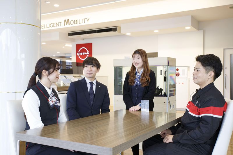 職場環境 <万全な教育体制> 日産サービス技術取得制度など、 職種や年次に応じた 教育制度をご用意。 最新の知識や技術の習得を 手厚くサポートしています。 喫煙所:喫煙所あり(屋外)