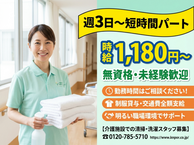仕事内容 ━━━━━━━━━━━━━━━━━━━━ \\注目ポイント// 【週3日~OK!】本業との両立しやすい 【時給1,180円】無資格・未経験OK 【Wワーク歓迎!】+αの収入にできます ━━━━━━━━━━━━━━━━━━━━ ◇◆ 特別養護老人ホーム明星について ◆◇ 特別養護老人ホーム明星では、 「すべての人と共に健康で生きがいのある 安心した暮らしを」をモットーに サービスを提供しています! 利用者様が、自然豊かな町で老後の 生活を送り、毎日を喜びや安心で 満せるようなケアを目指しています♪ ━━━━━━━━━━━━━━━━━━━━ 【業務内容】 \お任せするお仕事/ 特別養護老人ホーム明星での 介護補助業務をお任せします♪ 具体的には… 特別養護老人ホーム内で ・洗濯 ・清掃 ━━━━━━━━━━━━━━━━━━━━ 見学やお話聞くだけでもOK♪ お気軽にお問い合わせください! 皆様のお問い合わせやご応募お待ちしております! TEL:072-891-2029(徳山宛) ━━━━━━━━━━━━━━━━━━━━