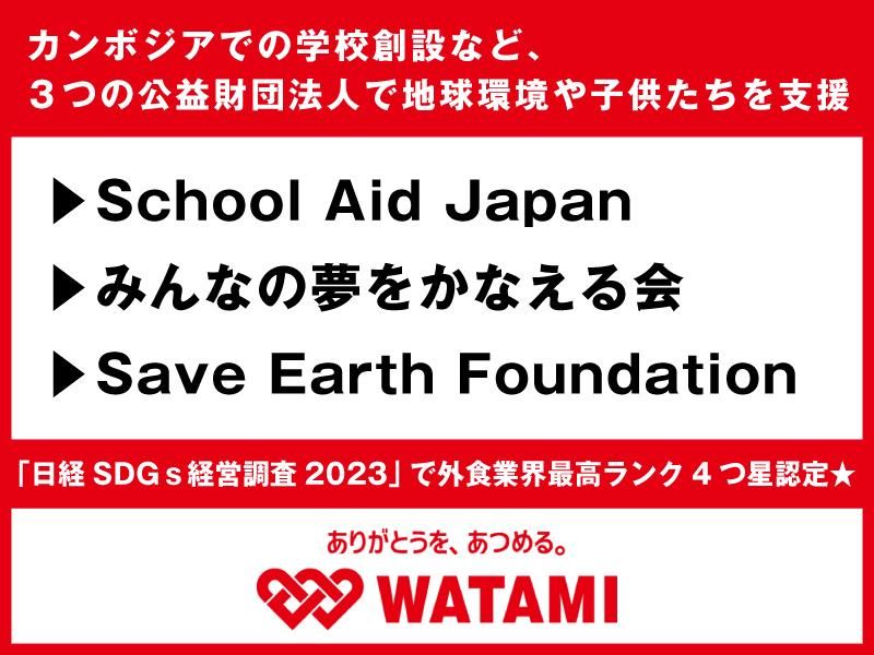 仕事内容 ━━━━━━━━━━━━━━━━━━━━ *デカくて旨い!唐揚げが名物の大衆酒場 *レトロ×モダンなオシャレ空間 *流行りを取り入れたメニュー開発も可能 ━━━━━━━━━━━━━━━━━━━━ 懐かしいけど新しい… そんなレトロモダンなオシャレ空間で こだわりの料理が楽しめる 大衆酒場『ミライザカ』。 今回は、店長候補の募集。 新しい時代の居酒屋を作りたい! やりがいをもっと感じたい! そんな前向きな思いをもつ あなたを歓迎します◎ ━━━━━━━━━━━━━━━━━ 仕事内容 ━━━━━━━━━━━━━━━━━ ホール・キッチンなど 配属店舗のスタッフ業務で、 まずは店舗全体の動きを把握します。 その後、スタッフ教育や売上管理など 店長としてのマネジメントもお任せ。 ━━━━━━━━━━━━━━━━━ スタッフを大切にする 大手企業で働きませんか? ━━━━━━━━━━━━━━━━━ ・働きやすさ◎ プライベート充実 ・月9日休み&5日間の連続休暇も取得可能 ・休日出勤や残業時間は厳格に管理 ・ホワイト企業大賞・特別賞の受賞あり! <注目!> 当社は基本的に 「残業をさせない」方針です。 残業が発生した場合も 残業代は1分単位で支給し みなし残業が一般的な飲食業界の 慣習を変えていこうとしています。 安心して長く働ける環境作りを 徹底しています。 労働時間や仕事の進捗については、 「残業が多くなっていないか」や 「過重な負担がかかっていないか」を 会社全体で細かくチェックし、 負担を軽減するために積極的に コミュニケーションを取っています。 (もちろん、サービス残業は一切禁止です) また、当社では社員の夢や目標を 応援する企業文化が根付いており、 毎月必ず全員との面談を実施しています。 個々の目標やキャリアアップをサポートし、 社員一人ひとりが成長できるよう バックアップしています。 ▼ぜひ、飲食経験者向け 特設サイトをご覧ください https://watami-recruit-lp.com/ ワタミは、経済産業省が定める 健康経営優良法人認定制度に基づき、 3年連続で 健康経営優良法人2024年 (大規模法人部門)に認定。 生産性向上を目指したDX化、 働き方の改善、ダイバーシティへの 取り組みなど外食産業を代表する 数々の取り組みがあります。