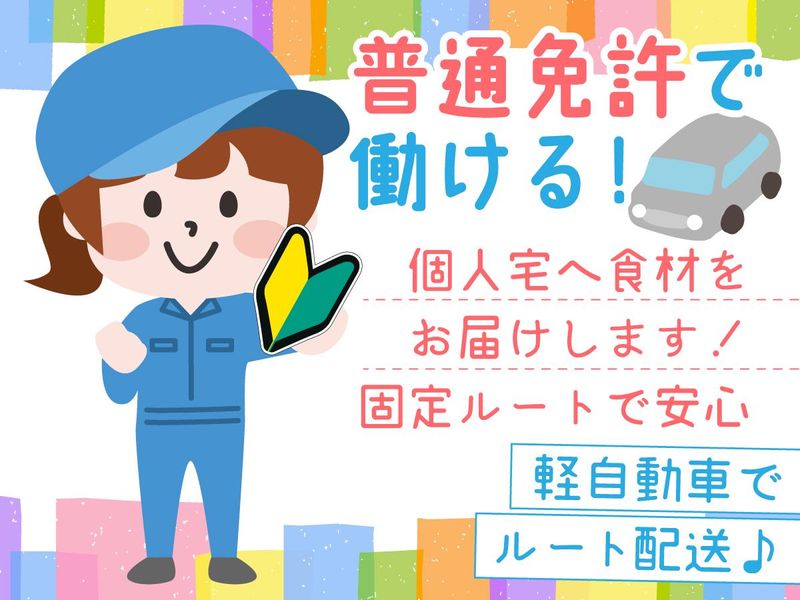 仕事内容 \16時退社で夕飯に間に合う!/子育て中のママが活躍中♪ 軽自動車で個人宅に食材をお届け◎ ルート配送ドライバーのアルバイト・パートスタッフ募集! ==================== °˖✧\\安心スタートが可能♪//✧˖° ●【未経験歓迎】主夫・主婦歓迎! ●【ルート配送】宅配エリアは固定! ●【研修あり】同乗研修あり! ●【軽自動車】ドライブレコーダーなど搭載! ==================== <お仕事内容> 軽自動車で個人宅に食材配送をお任せします。 配送エリア:固定 入社後:2週間~1ヶ月は同乗研修 ==================== ★「働きたいけど家のことも…」そんな方にピッタリの時短ワーク! 勤務は週3日からOKです♪勤務時間も1日6時間と短め◎ 16時に退勤できるから、ご家庭などの予定に合わせられます! ==================== ★軽自動車でラクラク配送♪ バックモニター&研修付きで安心スタート! 「仕事で車を運転するのは不安…」 そういう方もいらっしゃると思いますが、 宅配エリアは固定なので、一度覚えてしまえば簡単♪ バックモニターやドライブレコーダーが 搭載されているので安心してお仕事できます! 子育て中の方も活躍中です! そのくらい始めやすいですし、働きやすい環境です◎ ==================== ★未経験スタート多数! 「わからない」が言いやすい安心の職場◎ 在籍中のスタッフはほとんど主婦さん! いきいきと働き、楽しい毎日を送っています。 分からないことはすぐに聞ける環境です♪ ==================== ★生活優先×働きやすさ抜群! シフトは1ヶ月毎の申請なので前もって申請をすれば、 子どもの学校や行事などにも参加できます! 主婦さんが多い職場だから、 子育てしながら働く気持ちが 分かってもらいやすいです! ==================== ★独り立ち後は、1人で黙々と集中して働けます! 入社後2週間~1ヶ月は研修として 先輩スタッフが同乗します! 車の停車場所や道のことなど細かい部分まで しっかりと教えていきます! 独り立ち後は、基本は1人で配送していただくので 自分のペースで働けますよ。 ==================== ★最後に… ここまでお読みいただき、ありがとうございます♪ ご不明な点などございましたら、気軽にお問合せ下さい! ご応募心よりお待ちしています◎ ====================