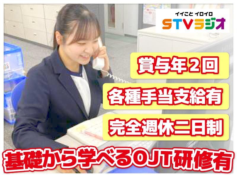 仕事内容 ~STVラジオの番組(求人)へようこそ!~ 地域に根付いた「自主制作番組」を中心にお届け! 北海道のラジオ局『STVラジオ』の正社員募集です!! この番組(求人)では、STVラジオで働く魅力や 仕事内容などをお伝えさせていただきますので、 気になる方はぜひ、ご覧ください! ー ✅ 最初のコーナーは「当社のアピールポイント!」 ――――――――――――――――― *学歴不問・業界未経験OK *年間休日120日 *計画的なお休み取得可能 ラジオ局など「マスコミ・メディア業界」は、 「経験者」か「新卒」の採用しか無いかと思われますが、 今回は経験の有無を問わず「意欲重視」の採用です! 経験の有無よりも『これからどう成長したいか』を重視しています。 そのため、ラジオ局で働くのが夢だった方や、 ラジオ番組が大好きな方も歓迎しています! また、年間休日120日と働きやすい環境も整えており、 昇給・賞与や各種手当で収入も安定。 「夢を叶える」だけでなくその先で 「活躍し続けられる」場所。 それがSTVラジオです。 ✅ 続いては「主なお仕事内容について!」 ――――――――――――――――― あなたのスキルなどに応じて下記のいずれかの部署に配属となります。 ジョブローテーションを行いながら、あなたの強みを活かしていただきます。 希望配属部署への声上げも大歓迎です!積極的なチャレンジを歓迎します! 【編成制作部】 リスナーの毎日に寄り添う『音のコンテンツ』を生み出す部署です。 ラジオ番組の立ち上げ、構成作成、収録・編集、 放送スケジュールの設計、SNSやイベントを通じた情報発信など、 リスナーに届ける「音の体験」を総合的にプロデュースする役割です。 放送局の中でも、特に「クリエイティブ性」と 「発信力」が求められるポジションを担います。 【営業部】【メディア推進部】【企画事業部】 ラジオ局のビジネス面を支える、 「企画力」と「提案力」が求められる部署です。 ラジオ番組の企画立案からスポンサー企業・広告代理店への提案営業まで、 放送を「ビジネスとして成立させる」ための重要な役割を担います。 企業の課題やブランドイメージに合わせて最適な企画を組み立て、 放送を通じた効果的なマーケティング施策を共に作り上げていく仕事です。 また、番組放送後の効果検証や改善提案など、企業との長期的な関係構築も担当します。 【入社後の流れ】 社内各部署での研修後、配属される部署でOJTを通しながら お仕事に慣れていただきます。 【大切にしていただきたいこと】 ラジオ番組はたくさんの人の協力で成り立っています。 そのため、どのお仕事をする上でも「コミュニケーション」が欠かせません。 一緒に番組を作る他の社員をはじめ、演者さんや協力いただく外部の方など、 様々な人とコミュニケーションを図りつつ、お仕事を進めていただきます。 ✅ 続いては特集「STVラジオの仕事の魅力!」 ――――――――――――――――― *自分のアイデア・企画が番組として放送され多くの人に届く 「達成感」や「企業成果」につながる『手ごたえ』がある。 *企画・制作・広報まで幅広く関われるため、 メディア人として総合的に成長できる。 *パーソナリティやアーティスト、 企業など多様な人と関わりながら仕事ができる。 *地域の企業やリスナーをつなぐ「架け橋」として、 街を盛り上げる役割を担える。 地域密着×自主制作番組中心のラジオ局だからこそ、 自分たちでラジオ番組と地域を盛り上げられるという STVラジオならではの魅力がたくさんあります! 「ラジオ業界(マスコミ・メディア)で働きたい」から、 「STVラジオで働き続けたい!」と思える仕事が待っています! ぜひ一緒にワクワクする毎日を過ごしてみませんか? ✅ 続いては新コーナー!「先輩スタッフインタビュー!」 ――――――――――――――――― 小さいころからテレビやラジオが好きでした。 挑戦しやすさとアイデアをカタチにできる魅力を感じ、 地元北海道で働きたい思いからSTVラジオを志望しました。 STVラジオを選んだ決め手は、社員の熱意や活気ある雰囲気に共感したこと。 私が考えた企画が採用され、反響があると喜びを感じます。 挑戦を後押しし社員のアイデアを実現させてくれる環境が、 当社のカラーだなと思います! 同僚同士仲良く、会話の中から次の企画が生まれることも。 少しでも当社が気になった方は是非ご応募ください! ✅ 最後のコーナー「あなたの『やりたい』をカタチに!」 ――――――――――――――――― *経験やスキルは一切問いません! ここで少しだけ応募書類を見る際に、 大切にしているポイントをお話しします。 私たちが書類で見ているのは、 特別な経験や立派な実績だけではありません。 *なぜラジオ業界で働きたいのか *その中でも、なぜ「STVラジオ」なのか *これまでの経験や考えを、どう言葉にしているか あなた自身の言葉で考えや想いが 伝わるかどうかを大切にしています。 あなたの気持ちや意欲でSTV