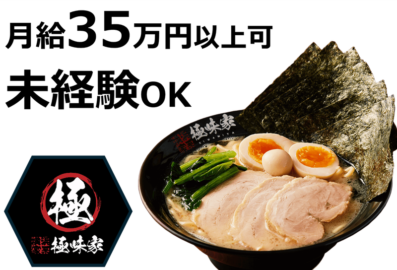 仕事内容 【仕事内容】 売上管理・具材の発注や納品管理・スタッフ管理(採用・教育)から、接客・調理補助まで、店舗運営の業務全般をお任せします。 *研修充実!未経験スタートも大歓迎です。 【アピールポイント】 ✅<オンライン面接OK!> もちろん来店での面接もOK!ラーメンもご馳走しますよ。 ✅<業界未経験OK!> 経験は問いません!居酒屋など飲食店での業務経験があれば尚可。 ✅店舗拡大中!最短4ヶ月で店長への昇格も可能 株式会社ジョイフードは、神奈川県・東京都・埼玉県に『横浜家系ラーメン極味家(きわみや)』を6店舗展開中!今後も各地でオープン予定があり、店舗数の増加と共に採用ポジションが増え、主任・店長やSV・ブロック長などへ昇格のチャンスが増えてます。 ≪昇格事例/職位別給与(目安)≫ ・~3ヶ月(研修)/月給29.9万円~33.1万円 ・6ヶ月目(店長)/月給35万円~40万円 ・8ヶ月目(SV)/月給40万円~50万円 ※基本給+インセンティブ・残業代(45時間相当分)を含む