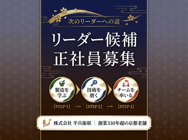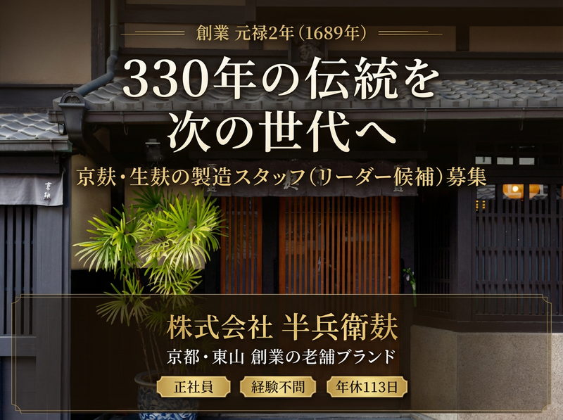 仕事内容 \食品(麸・ゆば)の製造販売/ ■洗浄、材料の仕分け、材料配合 ■製造作業、出荷作業 ■出荷商品の準備、商品の冷凍作業・検査 焼麩、生麩の製造作業をお任せします。 ▼簡単な募集内容▼ 【雇用形態】正社員 【給与】年収:300万~400万円 【勤務時間】8時30分〜17時30分 【勤務地】京都府南丹市美山町三埜腰ノ元11 【募集要件】未経験歓迎♪学歴不問 ★この求人のアピールポイント★ ■土日お休み!完全週休2日制! ■残業平均時間は10時間未満♪プライベート充実 ■経験・学歴不問☆ ■積極採用活動中! ==================== 【どんな会社?】 株式会社半兵衛麸は、元禄2年(1689年)に京都・東山の地で創業し、実に330年以上にわたって“京の麸文化”を守り続けてきた老舗企業です。初代・玉置半兵衛が商いを始めて以来、代々にわたり「先義後利(せんぎこうり/義を先にし、利を後にする)」という家訓を大切に受け継ぎながら、京都の食文化と共に歩んできました。日本の伝統食材である“生麸”や“焼麸”、そして“湯葉”を主軸とした製造を行い、現在では直営店やオンラインショップ、さらには観光客に人気の茶房「ふふふあん」を通じて、その魅力をより多くの方々に発信しています。 創業から三世紀以上にわたり守り続けてきたものは、ただの味や技法ではありません。四季折々の食文化に寄り添いながら、京都らしい繊細さと品格を大切にした「ものづくり」への誇り。そして、その背景にある“人と人をつなぐ食”への想いです。宮中にも由来する伝統的な製法を今に伝えつつも、現代のニーズや食スタイルに対応すべく、「生麸のスイーツ化」や「ビーガン対応」などの新たな商品開発にも挑戦を続けております。 さらに、京都市内だけでなく、自然豊かな南丹市・美山町に自社工場を構えることで、製造から販売までを一貫して行える体制を構築。徹底した品質管理のもと、全国の料亭・飲食店、ギフト市場へ安定した供給を行っています。また、美山工場は、単なる生産拠点ではなく、地域との連携や地元雇用にも積極的に貢献しており、持続可能な地域経済にも寄与する存在となっています。 【お仕事内容】 焼麩、生麩の製造作業をお任せします。 具体的には ■洗浄、材料の仕分け 材料配合 ■製造作業、出荷作業 ■出荷商品の準備、商品の冷凍作業・検査 などをお任せします。 今回募集するのは、美山工場勤務の製造スタッフ(将来のリーダー候補)です。熟練の職人が仕込んだ材料を、指定の機械や設備を使って製品にしていくのが主な仕事です。重労働や危険を伴う作業はありませんが、麸はとても繊細な商品ですので、機械操作の微妙なタイミングや手作業で美しく飾りを施すテクニックなど、焦らずじっくり覚えて身につけていってください。 《入社後の流れ》 まずは商品知識を身につけながら、先輩社員からのOJTを通じて独り立ちできるまで丁寧に指導いたします。少しずつさまざまなことにチャレンジしていただきます。 【会社の魅力】 ■土日お休み!完全週休2日制! ■残業平均時間は10時間未満♪プライベート充実 ■経験・学歴不問☆ ■積極採用活動中! 当社の働き方は、完全週休2日制で土日休み! 残業少なめ、転勤なしと、かなり働きやすい環境が整っています。 時代は変わっても、私たちの役割は「文化を守り、食の感動を届けること」。伝統に甘んじることなく、革新を恐れず、今後も“京の麸”という日本が誇る食文化を世界に広げていく。そのために、私たちは新たな仲間とともに次の300年を描き出していきたいと考えています。 業務内容などに関しては、面接の中でしっかりとご説明させていただきますので、当社でのお仕事にご興味を持っていただいた方のご応募をお待ちしています。