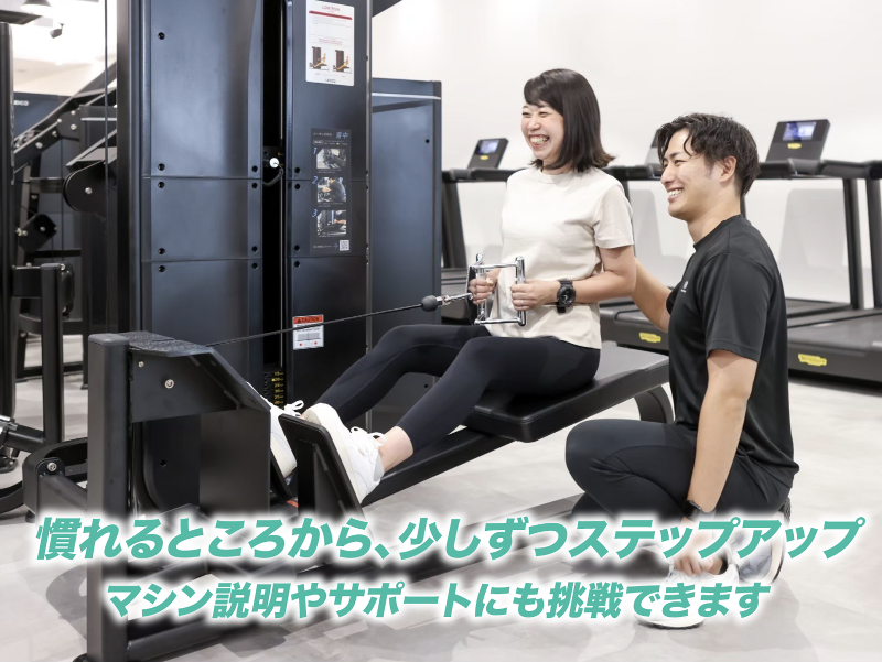 仕事内容: <おしゃれで清潔感のあるフィットネスジムでのお仕事です✨> 受付やサポート業務を中心に、ジム運営を支えるお仕事をお任せします。 会員様と接する機会が多く、明るい対応やコミュニケーション力が活かせる環境です。 【主な業務内容】 ・入会手続き、施設のご案内 ・電話でのお問い合わせ対応 ・簡単な事務作業、館内の清掃 ・会員様へのマシンの使い方のご説明(研修後) ・スタジオプログラムのサポート業務 など まずは受付・サポート業務からスタートし、慣れてきたら会員様への声かけや簡単なトレーニングのアドバイスなども少しずつお任せしていきます。 会員様とのちょっとした会話や気配りも、この仕事の大切な役割のひとつです。 「人と話すのが好き」「明るい雰囲気の中で働きたい」そんな方にぴったりの職場です✨ ✅ フィットネスやトレーニングの経験は問いません ✅ 未経験の方も、基礎から学べる研修制度があるので安心してスタートできます