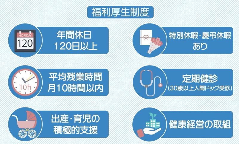 求めている人材 ✅高校以上 ✅学歴・経験不問 ✅PC基本操作ができる方(Word、Excel) ✅普通自動車免許お持ちの方 ✨こんな方にオススメ✨ ⭐ワークライフバランスの取れた環境で働きたい方 ⭐待遇・福利厚生が充実している職場を希望する方 ⭐異業種からの転職を考えている方 ⭐新しいことに挑戦したい方 ⭐チームで協力して働くことが好きな方 【社員に聞きました】 ✨働く人にやさしい会社✨ 年間休日120日以上、福利厚生が充実していて働きやすい! 家族との時間や自分の時間も多く持てています。 転職して、仕事もプライベートも両立できていると実感している人が多いです。 年齢の条件と理由:あり(■例外事由3号のイ・40歳以下(長期勤続によるキャリア形成のため))