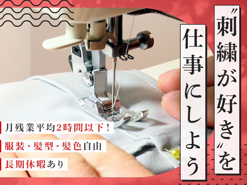 仕事内容 〇●‥‥‥‥‥‥‥‥‥‥‥‥ 経験・資格不問! あなたの“刺繍好き”を 仕事に活かしませんか? ‥‥‥‥‥‥‥‥‥‥‥‥●〇 <求人のPOINT> ✅必須条件なし&未経験者歓迎 ✅ 残業ほぼなし! ✅私服の刺繍、加工が無料でできる ✅ 全自動ミシンが主役! 手縫いのプロ技術は不要です ✅ 髪型・服装・ピアス自由! <仕事内容> ユニフォームや作業服に、ロゴや名前を入れる 「刺繍」と、簡単な「お直し」をお願いします。 刺繡作業 ・会社のロゴや名前の刺繡 ・ワッペン作成 PC上にデータを入力すれば ミシンが自動で縫ってくれるので 手作業での刺繍はありません! 加工作業 ・長袖から半袖に加工 ・サイズ変更 ・裾上げ ・ワッペン付け ・反射テープ加工 ・ポケットの作成 【1日の流れ(目安)】 フルタイムであれば1日150〜200着ほど担当しますが、1着数分で終わるものがほとんど。 「気がついたら定時!」なんてことも多い、没頭できるお仕事です。