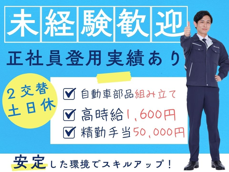 ■仕事内容 ✅今だけの精勤手当50000円あり!(規定あり) ✅ 未経験からスタートOK! ✅ 簡単な作業ばかりだから安心♪ ✅ 正社員登用のチャンスあり! ✅ お友達同士の応募も歓迎! ✅ 大量採用中で採用率UP中! 【お仕事内容】 自動車部品(ボディ部品など)の一貫生産を行っている工場でのお仕事です。 希望や適性に応じて、以下のいずれかの工程に配属されます! ◆ プレス作業 ・成形された部品を集めて箱に詰める ・部品の運搬作業 ◆ 溶接・組立作業 ・ロボット溶接機に部品をセット ・簡単な機械操作でOK!(付属部品の取り付け) ◆ 物流業務 ・完成品の集荷や運搬 ・各工程への部品供給(配膳作業) ※配属はあなたの適性や希望を考慮して決定します♪ 【今がチャンス!大量募集中!】 採用強化中の今だからこそ、チャンスも広がっています。 あなたの「やってみたい!」を全力応援! ぜひお友達と一緒にご応募ください♪ あなたのご応募、お待ちしています! ■仕事の特徴 フルタイム歓迎 長期歓迎 副業・WワークOK 平日のみOK フリーター歓迎 学歴不問 未経験・初心者OK ブランクOK 経験者・有資格者歓迎 資格不問