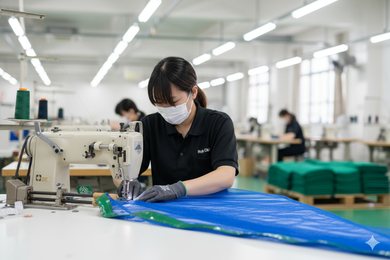 農業用・園芸用ネットの縫製作業