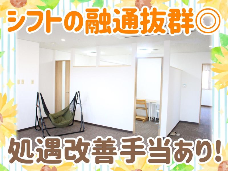 シフト制 勤務時間詳細 (平日) 14:00~18:30 (土曜、長期休み) 10:00~18:00 ⇒週2日~OK!(平日のみもOK) ☆勤務時間は自由に相談OK◎ ガッツリ働きたい方は13時から! お子さんの送迎がある方は17時、17時半まで! など、プライベートに合わせて調整可能! ☆4月から土曜日も開所予定! 土曜日のみの週1日勤務もOKなので、 副業やWワークで働きたい方も歓迎♪ 働きたい日程や曜日は自由にご相談ください! お子さんの体調不良等での急なお休みにも 柔軟に対応してますので、ご安心ください。 *扶養内勤務OK! *シフトの融通抜群!