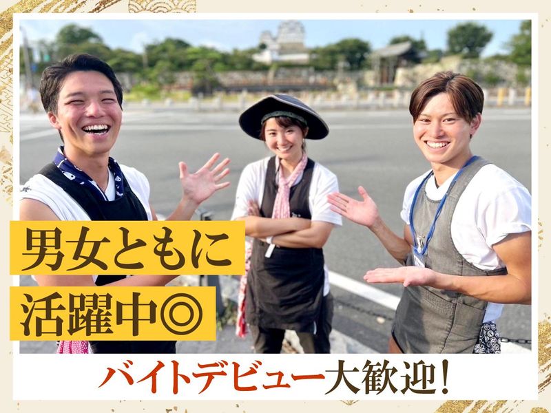 求めている人材 【こんな方におススメ!】 ✅ 観光が好き! ✅ 人と話すのが好き! ✅ 普通のアルバイトじゃ物足りない! ✅ 就活で話せるネタがほしい! ✅ 仲間と楽しく働きたい! ✅ 身体を動かしたい! 話が盛り上がりすぎて怒られる なんてことはありません! お喋りも仕事の一つ お客様に楽しんでもらえればOK! 「一生の思い出に残る仕事」 を一緒にしませんか? 少しでも気になった方は、ぜひご応募ください! 【歓迎条件】 ・未経験歓迎 ・学生さん~20代活躍中 ・進路決定済みの高校生もOK! ・ハローワークでお仕事お探しの方も歓迎 ・扶養内勤務OK ・身体を動かしたい方 ・スポーツが好きな方 ・和が好きな方 ・観光業に興味はある方 ・テーマパークのお仕事に興味がある方 ・接客業に興味がある方 ・お城好き ・歴史好き 【現在活躍のスタッフ】 姫路市内のスタッフも多いですが、 宝塚、加古川、高砂、たつの、相生 などなど… 幅広い地域から通ってくれています! 珍しいお仕事だからこそ、 遠くても「働きたい!」と来てくれています…! 【過去の先輩の志望動機】 ・就活で活かせる経験をしたかったから ・バイトでもやりがいを感じられる仕事が良かったから ・アナウンサーになる夢に近づくため、トーク力を向上させたかったから ・人と話すのが好きで地元で働きたかったから ・コミュニケーション力に自信を持てるようになりたかったから ・人力車に興味があったから などなど…志望動機は様々! みんなが共通して持っているのは、頑張りたい!という気持ちです! 少しでも気になった方はまずご応募くださいね♪