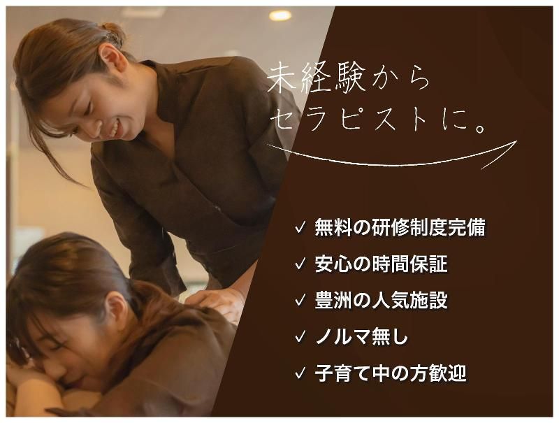 待遇・福利厚生 【福利厚生】 ・無料の研修制度 (研修は現地で行います) ・業務開始後の技術アップ無料研修あり ・奨学金制度あり・上限10万円 (研修中の収入補助を 無利息で貸出サポート) ・通勤時も安心の労災保険加入 (509円/月) ・お客様の体を触るお仕事でも 安心の損害保険制度 ・免税事業者のまま業務可能! ・食事利用補助制度あり ・食事・リラクゼーション 従業員割引あり ・施設入館優待制度 ・施設の露天風呂・大浴場を 無料でご利用可能 ・自動車・バイク通勤OK (無料駐輪スペースあり) ・ノルマなし ・副業・WワークOK ・取扱商材の割引き購入 ・スタッフ紹介制度(謝礼金あり) ・アロマ・新製品技術講習会あり