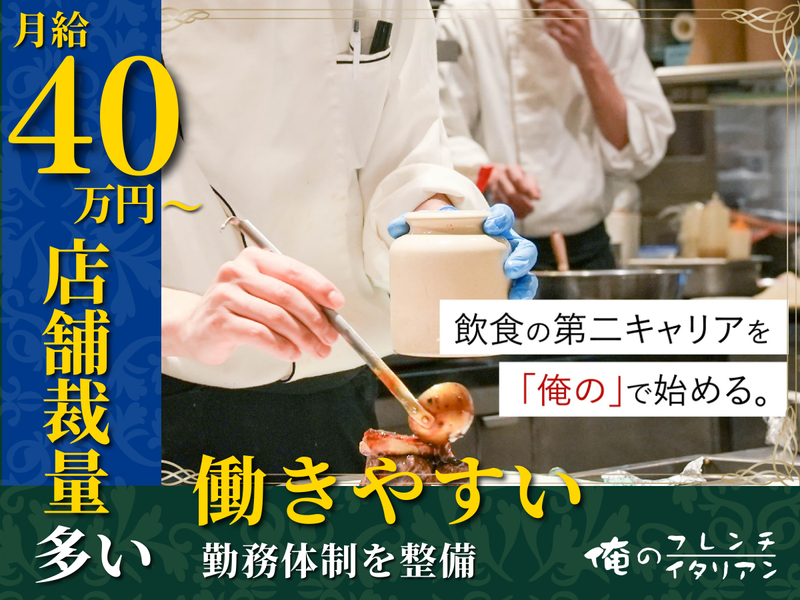 仕事内容 ✅ 次の「俺の」をつくる料理長候補募集 ✅ 月給40万円以上で採用 ✅ 入社半年で料理長の実績あり ✅ 売上・人件費まで触れる裁量 ✅ 働きやすい勤務体制を整備 ▼仕事内容の概要 「俺の」シリーズの料理長候補として、調理だけでなく店舗運営全体に関わっていただきます。 前菜・プリモ・セコンドなど各ポジションを担いながら、売上や原価、人件費を意識した施策立案・実行まで担当。 店長とともに損益計算書を見ながら、どの時間帯を狙うか、どのメニューで打ち出すかを決めていきます。 仕入れ先の見直しやオペレーション改善も料理長の仕事です。 ▼<具体的には…> ・前菜、パスタ、メインなどの調理全般 ・売上、原価、人件費を踏まえた施策立案 ・季節限定メニューや本日のおすすめ企画 ・仕入れ先の選定、原価コントロール ・スタッフ育成、現場オペレーション構築 <⭐【任せる前提の店舗運営】> グランドメニューはブランドとして共通ですが、 季節メニューや本日のおすすめは店舗ごとに企画します。 前月の損益計算書、直近の売上動向、 当月予算を照らし合わせながら、 どの時間帯を強化するか、 どの食材に原価をかけるかを決めていきます。 仕入れ先の見直しや人件費を抑えるオペレーション構築まで、店長と話し合いながら決定。 「作る人」だけではなく、「店を動かす人」として厨房に立てる環境です。 <⭐【入社半年で料理長へ】> 料理長候補として入社し、ポジションを一つずつ習得。 前菜、プリモ、セコンドを回せるようになった後、マネジメント業務へ段階的に移行します。 実際に入社半年で料理長へ昇格した実例もあります。 年齢ではなく、現場での行動と結果を見て役割を任せる文化です。 「ポストが空かないから上がれない」という構造ではありません。 <⭐【働きやすい勤務体制を整備】> 月8~9日休み、年間休日105日。 半休+有給取得も可能で、土日の希望休も相談できます。 終電時間は必ず考慮。 固定残業45時間を超えた分は1分単位で全額支給します。 「飲食は休めない」 そんな前提で働く環境ではありません。 <⭐【結果が給与に反映】> 月給40万円〜59万5,000円。 年収モデル ・30代料理長:540万円 ・40代SV:720万円 業績賞与は年4回。 入社1年目から支給対象です。 売上改善や人件費コントロールなど、 店舗への貢献は給与や賞与に反映します。 ー ✅俺のブランド、次のフェーズへ。 ー 高級食材を手頃な価格で提供する 「俺の」ブランド。 料理人の技術とサービスを強みに 成長してきました。 いま私たちは、 職人文化の良さを残しながら 店舗運営やマネジメントを見直す 新しいフェーズに入っています。 次の「俺の」をつくるため、 この変化を一緒に進めていく 料理長候補を募集しています。