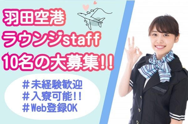 2月・3月スタート✨羽田空港勤務✨未経験ok✨国内線ラウンジstaff【寮完備・オートロック/ワンルーム/初期費用なし✨】