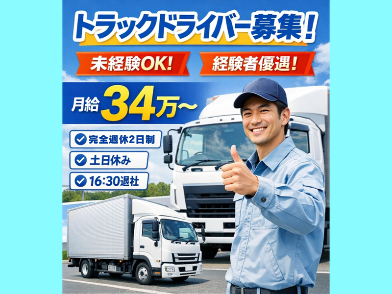 求めている人材 必須条件 ・準中型免許 ・旧普通免許(AT限定不可) 歓迎条件 ・中型・大型免許 ・業種を問わずトラックを運転したことのある方(配送・現場まで運転してたなど!) ・運転が好き!・安定した収入が欲しい!・夜勤なしでプライベートと両立したい! ・未経験・異業種からの転職大歓迎!