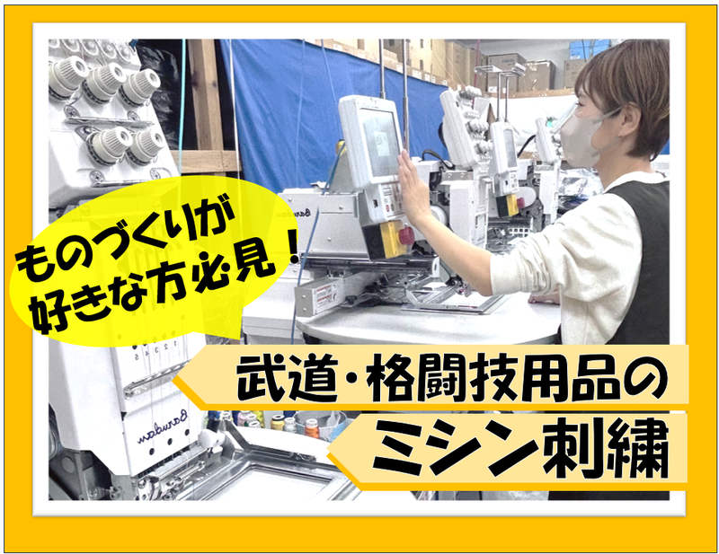 仕事内容 / こんな方大歓迎!!!! \ 「ものづくりが好き」 「格闘技や武道に興味がある」 「ミシン・裁縫・刺繍が得意」 【お仕事内容】 格闘技などの武道に着用する用品に コンピューターミシンで刺繍をするお仕事です! やる気があればOKです!!✨ 【製品】 ✅道着 ✅帯 など 「ミシンを使ったことがほとんどない」 「コツコツモクモクのお仕事がしたい」 「スピード感よりも丁寧な仕事が得意」 そんな方もイチから丁寧に教えるので 安心してご応募くださいね。 【株式会社イサミとは】 昭和27年創業。 武道、格闘技用品の製造メーカーとして 道着や帯などの製造や販売をしております。 久喜市・加須市に工場があり、 製造を行っております。