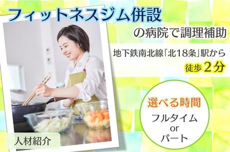 仕事内容 整形外科病院で患者さんに提供する食事の調理補助をお願いします。 お任せするのは主に盛付け、食器の洗浄等。 北海道・整形外科初のメディカルフィットネス! 病院内には北海道初の整形外科メディカルフィットネスが併設されています。 医学とスポーツ科学を結合させることで、自分のコンディションを正確に知りながら自分に合ったトレーニングをすることができます。 運動機能障害の予防・ケアからスポーツ選手のトレーニングまで、あらゆる方を対象にサポートします。 ※画像はイメージです。 仕事内容について 病院食の調理補助や洗い物などのお手伝いスタッフを募集します! 地下鉄から徒歩圏内で通勤もラクラク♪ 資格・経験は必要ないので未経験でも挑戦できるお仕事です! 60代の方も現役で活躍中ですよ♪ 続けられるか不安…な方は、3ヵ月以内のお試し勤務も可能です◎