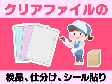 仕事内容 クリアファイルの検品・仕分け・シール貼り作業 *重たい作業一切なし* ………………………… ”クリアファイルの検品・仕分け・シール貼りなど簡単作業★ 会話少なめ!!コツモク簡単作業◎ _____________ * 具体的には *  ̄ ̄ ̄ ̄ ̄ ̄ ̄ ̄ ●傷などが無いか確認 ●印刷する際の補助 ●仕分け ●ペタペタシール貼り など の繰り返し! やっていただくのはこれだけ!! 初めての方でも半日あれば覚えられます! それでもわからないことは先輩staffが 丁寧にサポートするので安心して下さいね♪ *━━━━━━━━* とある1日の流れ *━v━━━━━━* 【8:40~8:50★点呼開始!】 ・9:00~9:30 →お仕事先でお仕事の説明 ・9:30~12:00 →教わったお仕事をひたすら繰り返し ・12:00~13:00 →お昼休憩!(1時間) ・13:00~18:00 →午前中と同じ作業の繰り返し >>>18時には完全終了!! ★☆ スポット・ド短期・単発OK ☆★ ●働き方は自由自在! ●スキマ時間や空いている日を有効活用できる! ●平日だけ、土日だけもOK! ●1日~OKのスポットワーク! ━━━━━━━ ★こんな方に★ ━━━━━━━ ■長期休暇に自由にお金を使いたい! ■週末の飲み会に向けてお金が欲しい ■会話少なめで簡単な仕事が欲しい など ★☆嬉しいメリットを教えてください!☆★ 【1】日払いOK 「急な出費のときに本当に助かる…」 「欲しいものがすぐに買えます♪」 「遊ぶ予定の前にサクッと稼いでます!」 【2】短期OK 「長期休みのときだけ働いてます!」 「次の仕事が決まるまでの"繋ぎ"で」 「季節限定のオシゴトだけ♪」 ★☆ スタッフの声 ☆★ 「家庭と両立して働けています。 子育てが落ち着いたらもう少し シフトを増やしてみようかな!」 「アルバイトをしていたけど 急にシフトに入れなくなって 困っていたときに応募しました!」 みなさん、学校・家庭・他のお仕事など と上手に両立しながら働いていますよ♪
