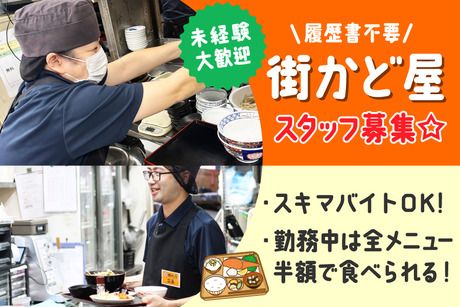 仕事内容 【仕事内容】 <未経験ok♪幅広い世代のstaff活躍中☆> <食事補助あり☆メニュー全品50%off♪> <頑張りに応じて昇給あり☆> <★キッチンの仕事内容★> ・調理・調理補助 ・仕込み・食器洗い など <★街かど屋のここがオススメ★> ・調理の難易度が幅広い! →食材カットから炒め物、 盛り付けなど幅広い調理方法が! まずはできることからお願いします♪ 慣れてきたらハンバーグ作りや 煮込み料理作りなどチャレンジできます☆ ・レシピがわかりやすい! →1品1品のレシピが調理場にあります! 初めて作る料理でも温める時間や 調味料の分量が記載されてるので 迷うことなく作れます♪ ※大盛りやおかずダブルの場合も書いてあります! ・食器洗い時の手が荒れにくい! →手袋を完備しています! そのうえ水を触る時間が 食洗機のないお店に 比べて極端に少ないです! 水洗いなので洗剤を使用する頻度も少なく 手荒れになりにくいです♪ ・勤務中にご飯を食べる場合、メニュー全品50%off →一汁三菜を主とした定食が半額! ご飯もおかわり自由でコスパ最強定食☆ 健康的な食事がしたい方・食べ盛りの方には よりオススメの福利厚生です★