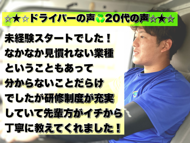 求めている人材 【必要資格・免許】 ・準中型運転免許(5トン未満)以上の資格をお持ちの方 ・トラック運転手経験者歓迎 ※未経験・普通免許しかない方も相談OK! 資格取得支援あり 会社全額費用負担で免許取得が可能です。 ※個人負担は一切ありません 下記の方歓迎 ・ブランクOK ・フリーター歓迎 ・長期勤務希望の方歓迎 ※ハローワークでお仕事を探されている方も歓迎 【活躍中のスタッフ】 ・20代30代も活躍中! ・大型ドライバー、中型ドライバー 配送ドライバー、セールスドライバー 物流業界出身の方はもちろん! ・中古車販売、防水工事、建設資材販売、 建機のリース会社、 土木関連、自動車整備 電気工事、家具・家電配送 土木施工管理、左官工事、飲食関連 不動産仲介、重機メンテナンス 自動車パーツ関連、溶接工、大工 配送助手・軽作業荷揚げスタッフ 引っ越しアシスタント・産業廃棄物運搬 倉庫関連など異業種から飛び込んだ方も多数在籍!