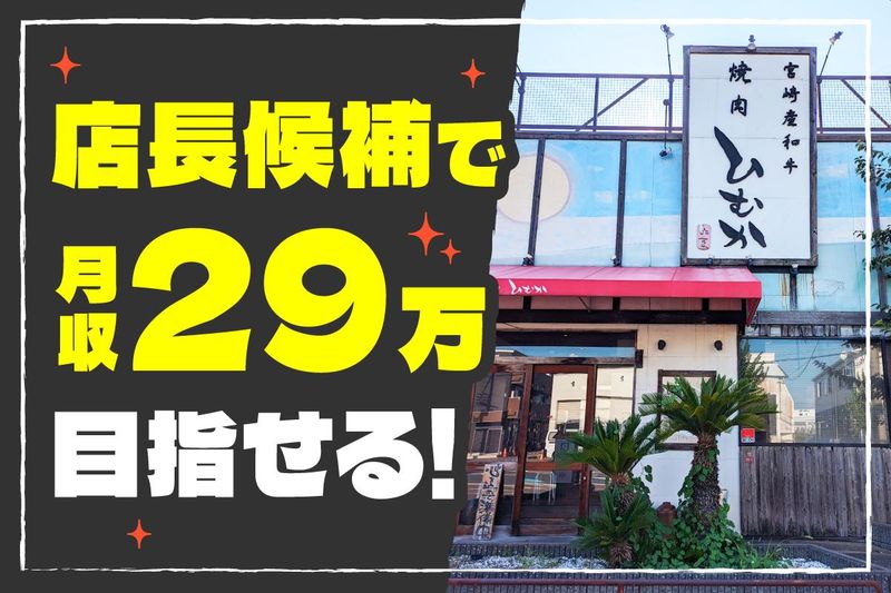 仕事内容 電話応募も大歓迎です! 応募後は、【072-864-1194】 からご連絡させていただきます♪ がっつり働きたい方大歓迎!! 社員候補は【月給26万円~】 店長候補は【月給29万円~】 からスタートできます✨ 経験よりも“やる気”を大切にしています! 将来的には店舗運営にも関われるチャンスあり◎ ✅収入重視、しっかり稼ぎたい方歓迎! ✅未経験OK!丁寧な研修で安心スタート ✅落ち着いた雰囲気の高級焼肉店 ✅社員登用制度あり!長く働けます ✅無料まかないあり・髪色自由 ✅バイク通勤OKで通いやすい ╭━━━━━━━━━━━━━━━━━╮ 『焼肉牛匠 ひむか』ならではの魅力 ╰━━━━━━━━━━━━━━━━━╯ ✨落ち着いたスタイルの 高級焼肉店  ̄ ̄ ̄ ̄ ̄ ̄ ̄ ̄ ̄ ̄ ̄ ̄ ̄ ̄ ̄ お客様は上質なサービスと空間を求めて 来店されるため、 店内は穏やかな雰囲気です。 そういった環境で働きたい方にピッタリ! ストレスを感じような対応は 発生しません◎ ✨基本からじっくり学べる 研修をご用意  ̄ ̄ ̄ ̄ ̄ ̄ ̄ ̄ ̄ ̄ ̄ ̄ ̄ ̄ ̄ 接客未経験の方のチャレンジを応援! 入社後は丁寧な研修があり、 サポート体制も万全です◎ 基本的な接客マナーから、 丁寧にお教えします。 また、仕事を通じて礼儀やマナーが 自然と身についていくため、 将来にも活かせるスキルが得られます。 << 高級焼肉店のホール業務全般 >> ◆お客様のご案内 ◆オーダーの確認・提供 ◆ドリンクや料理の配膳 ◆お会計・レジ業務 ◆テーブルの準備・片付け・清掃 習熟度に応じて以下もお願いします。 ◆レジ・会計 ◆フロア管理 など ~ お店の情報 ~ *営業時間:昼 11:00~14:30 夜 17:00~22:30 *総席数:70席(掘りごたつ有) *貸切可能人数:20名~30名 *宴会最大人数:着席時18名 ╭━━━━━━━━━━━━━━━━━╮ 週5日×実働9hの安定勤務 ╰━━━━━━━━━━━━━━━━━╯ 「とにかく稼ぎたい」 そんな方にオススメです。 半月ごとのシフト提出なので、 予定が立てやすいことも大きな魅力♪ フリーターさんも活躍しやすい職場です。 社員登用制度もあり。 「将来は安定の社員になりたい」 「ステップアップを目指したい」 という方を全力で応援します!