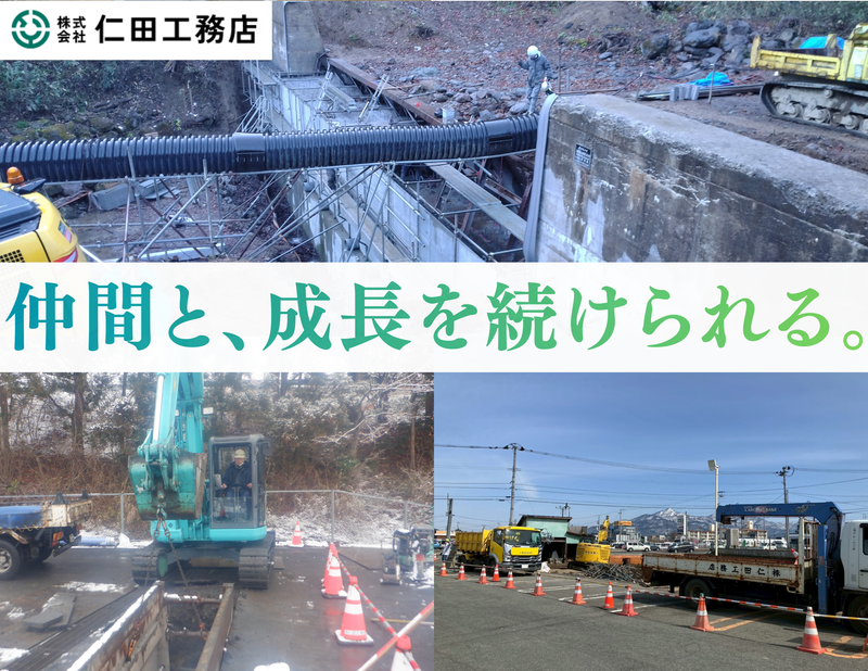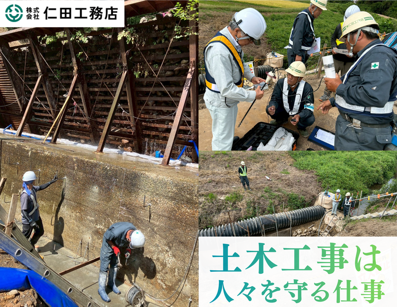 仕事内容 ✅ご自身の入社により、当社のベテランの皆さんの願いを叶えてくれませんか。✅ 当社、仁田工務店は 本社が岩手県一関市。 東北で歴史を積み重ね、 創業60年を迎える老舗企業です。 長い歴史はこれまでの先輩方や 現在活躍するベテランさんなどの 当社社員の活躍によるものです。 今回の募集においては 【現場業務の経験者さん採用】 を考えています。 土木業務・建設業務などは 問いませんし、 経験年数も数年程度で構いません。 じつは当社のベテランの皆さんが 軒並み50代後半~60代を迎える時期です。 技を磨き、活力を持って頑張ってくださる 素晴らしい方々です。 だからこそ、これから数年先、 ご自身のいつかの引退が近付いていく中で 仁田工務店・土木部の未来に向けて 新しい仲間を心から探しています。 当社は『直営土木』という形で、 自治体からの公共事業を中心に 元請けとしての自社工事・施工の為、 安定した仕事量・受注体制があります。 もちろん、スタッフさんが増員していき、 4人で1つのチームがまた増える事で 事業部自体は更なる発展を遂げていきます。 土木部は公共事業における 土木工事を数多く担当しており、 宮城県北部・岩手県において 定期的な治山修繕工事、 県道・国道の土木工事の案件があります。 災害復旧工事や国道・県道の維持管理など、 地域の生活インフラを守る仕事が中心です。 転勤も無い為、 地域で働きたいにとっては最適な職場です。 これまで他現場で腕を磨かれてきた方、 新しい職場環境に興味を持っている方、 10年先を見据えて活躍の場を拡げてみませんか? 【お任せしたいお仕事内容について】 ・治山工事や河川の災害復旧工事(護岸の石積み・型枠組立・コンクリート打設など) ・国道・県道の維持管理(路面・側溝の補修、法面の草刈り 等) ・一関~宮城県北エリアまでの公共インフラ関連工事 ほか 1チーム4人体制を組み、 納期や安全を守りながら、 段取りよく作業を進めていきます。 あなたには、これまでの経験を活かして、 新人・若手への指示出しやフォローの実施 現場でのコミュニケーションの「つなぎ役」 本社とのやり取りの中での状況共有 といった“中間ポジション”も、 少しずつお任せしていければと考えています。 ※現場まで直接、車で出勤が出来る方を歓迎します。 ✅仁田工務店について✅ 当社、仁田工務店は ふるさとに ”にぎわい”と”元気”を創る 地元ゼネコンとして、 創業60年の歴史を紡いできた会社です。 施工する建物は 大型商業店舗・教育福祉施設、 流通倉庫・集合住宅・住居など様々。 土木部においては、 地域に住む方々の安全を守る役目があります。 <代表取締役社長:長嶌大輔より> 1966年、今から約60年前、 当社は一関で創業しました。 その昔、一関駅前周辺で区画整理事業があり、 建築土木工事の住宅の建築や 通信土木工事(電線を地下に埋設する工事のこと)、 水道管の埋設工事の需要が高まった頃に、 仁田工務店は創業された歴史ある会社です。 昔から頑張ってくれているベテランさん、 新卒で入社する若手、 経験を持って入られる中途の方まで、 様々な仲間達35人以上が集う会社です。 東北が地元の工務店としては 歴史と規模、どちらも 安心・安定の企業となります。 <これからの仲間へ> 仁田工務店はとにかく人が良いです。 仲間がいるからこそ高めあい、 成長できる場所だと 自信を持って断言します。 新しい仲間の皆さんとの出会いを 社員一同、心からお待ちしております! ■仁田工務店の採用HP■ https://arwrk.net/recruit/nitta-co-ltd