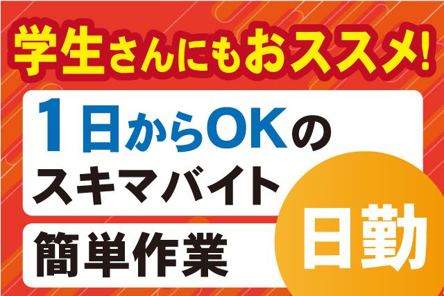 仕事内容 【誰もが知ってる有名海外スポーツブランド】 日勤の倉庫内作業! 単発1日から週5日まで、 働く日は自分で自由に決められます! サクッとお小遣い稼ぎしたい学生さんにも! 冬休み期間中だけ働きたい 学生さんにピッタリなお仕事です。 日払いや週払いができるのでお財布に安心! 早めにお仕事初めて収入をGETしましょう! (おススメポイント) 〇空調完備で快適な物流倉庫 〇成田駅から無料送迎あり 〇未経験OK 〇日払いOK&週払いOK 〇お友達同士でのご応募もOK 〇Wワーク・扶養内OK 〇土日休みOK・土日のみOK THビジネスサポートでは、 自宅にいながらスマートフォンで簡単にできる 「ウェブ面接」も可能です。 入社日応相談! 就業中の方もお気軽にご相談ください。 お電話でのご応募&お問い合わせもお気軽にどうぞ! 電話 050-5490-8250 空調完備の快適倉庫 1度は聞いた!見たことがあるスポーツブランドです!! 商品の運搬、積み、卸し作業等 本当にカンタンなお仕事、 初めての方でも勤務初日でほとんどマスターできます。 単純作業で副収入にも最適! 迷ったらまずはご相談くださいね! 【お仕事のポイント】 ・単発も長期もお仕事多数!! ・1日~OK/短期単発もOK! ・日払いOK!! ・無料送迎あり! ・履歴書不要!! ※1日のみ~WワークOK