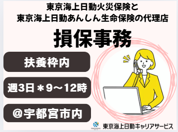 \扶養内*午前中だけでOK!/ ◆月水金の週3日*実働3時間だけ ◆少人数×穏やかな環境 ◆東京海上日動火災保険と東京海上日動あんしん生命保険の代理店