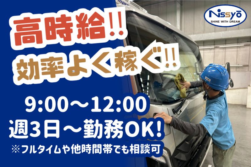 【アピールポイント】 【新車トラック磨きの専門スタッフ募集】 ■9~12時、週3日~勤務OK ■車好きな方必見!特殊車両も担当できる ■体を程よく鍛えたい方にもオススメの仕事