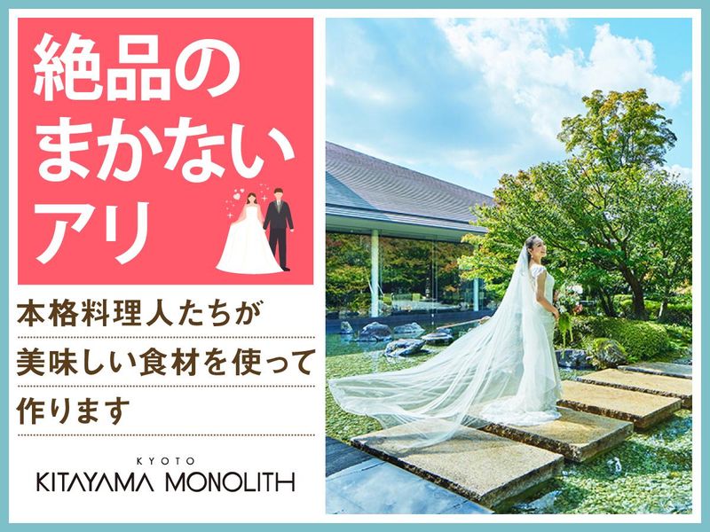 仕事内容 *土日祝に幸せな瞬間をお手伝い!* 感動いっぱいの結婚式を一緒にサポート♪ 週1~の柔軟シフトでWワーク・副業OK! フリーターさん・主婦パートさんも活躍中♪ 「人が喜ぶ姿が好き」「サプライズが好き」 という方必見!スキルや経験は一切不要! 一緒に素敵な結婚式を演出しましょう* 北山モノリスは 北山の閑静な住宅街の結婚式場。 ウェディングのお手伝いをするお仕事です◎ <主なお仕事内容は…> 結婚式場スタッフとして 次のお仕事をお任せ ■会場の準備 ■お客様の上着や荷物のお預かり ■お席のご案内 ■結婚式のお料理・ドリンク提供 ※キッチン業務はありません◎ ―――――――――――――――― Wワークのフリーターさんや主婦さんに オススメのポイントはこちら★★ ―――――――――――――――― ・週1日~1日4.5時間~OKで融通◎ ・希望シフト制でかけもちも応援♪ ・本業が休みの土日だけ等大歓迎! ・絶品のまかないアリ(^^) まかないは本格料理人たちが美味しい食材を使って作ってくれます♪ ―――――――――――――――― 特別な1日をサポートするお仕事 具体的な仕事の流れは? ―――――――――――――――― ▶STEP.1 ミーティング 披露宴の流れやお料理について スタッフ間で事前に確認して 式中にバタバタしないようにします◎ ▶▶STEP.2 披露宴会場の準備 お席に置く名札や ゲストの方に渡す引き出物を確認したり グラスを磨いたりして準備します。 ▶▶▶STEP.3 お客さまのお出迎え 荷物をお預かりし、 待合室でドリンクをお出しします ▶▶▶▶STEP.4 ホール業務 お席にご案内し、順番にお料理や ドリンクを提供します◎ ―――――――――――――――― 幅広いポジションがあって 飽きることなく勤務できる◎ ―――――――――――――――― ☆ポジションに分かれて 結婚式のお手伝いをしていただきます! ●サービススタッフ ➡自分の担当テーブルにお料理や ドリンク提供していただきます! 担当制にしているので 披露宴を通してお客様と関係が作れ、 披露宴後に 『あなたに担当してもらえて良かった』 なんて言葉をいただけることも、、、! ●ドリンカー ➡オーダーを受けたドリンクを作って お客様へ提供していただきます! 簡単なドリンクばかりです☆ ●レセプションスタッフ(フロント) ➡結婚式の受付周りをサポートするスタッフです! クローク対応や、ゲストへのお声かけなどなど。 ●音響スタッフ ➡披露宴の演出のかなめとなるポジション! 映像・音響・照明操作など、 あなたのセンスで結婚式を最高のものに創り上げてください! 最初はサービススタッフからスタート! どのポジションもしっかり研修制度があるのでご安心ください! 適性や本人の希望を考慮し、随時新たなポジションを任せていきます。 任せられるポジション増えるとどんどん昇給もしていきます☆ ―――――――――――――――― 未経験者歓迎! みんなで助け合う雰囲気です ―――――――――――――――― 最初は結婚式の見学からスタート! 見学後は本番じゃないところで、 研修を実施します◎ 飲食業やホールスタッフが 初めての方には お盆の持ち方から教えます!