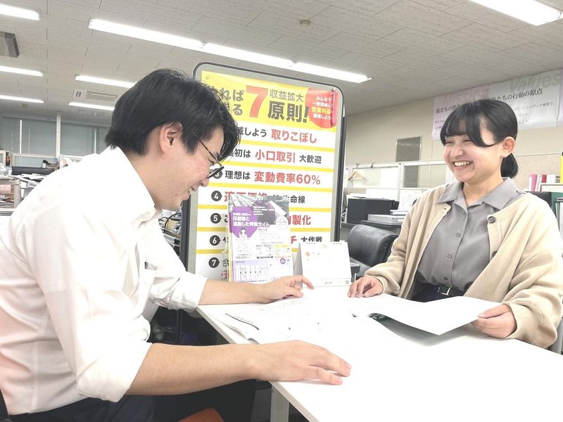 求めている人材 学歴不問・業種・職種未経験者歓迎! 第二新卒歓迎!20代は面接確約でご案内します。 人柄重視の採用です。 ■活躍できるタイプ ※1つでも当てはまればOK! □人と話すのが好き □色々な人と関わりながら一つのことを進めるのが好き □広告やクリエイティブに関わる仕事がしたい □1度頑張ると決めたことは、最後までやり通したい □誰かの役に立つと嬉しくなる □仕事もプライベートも充実させたい □失敗をバネにして試行錯誤するタイプ □ものづくりが好き …――――――――――――――――… ★職場についてインタビュー★ OO先輩/営業・2023年入社 20代中盤 …――――――――――――――――… 【Q】働きやすさを感じる瞬間は? 休みが多いし有給も取りやすいんですよ♪ちょうど子供が生まれた男性の先輩がいて、育児休暇や有給しっかり取ってましたね。そういうの見てると、取りやすい環境だなって実感します! 【Q】休日の過ごし方は? 完全週休2日制なので、休日は2日間ゆっくり過ごすことが多いですね!2年目になって業務量が増えたんで、土日くらいはゆっくりしたいなって。上司や先輩が優しくサポートしてくれるおかげで、仕事量が増えても頑張れていますね!