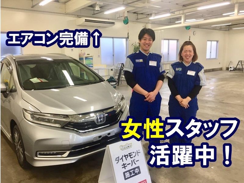 仕事内容 冷暖房完備の快適作業場で、お客様の車のキーパーコーティング業務 ◆具体的には、 ・受付 ・メニューを元にプランのご案内 ・作業 洗車→コーティングの順で作業を進めます。 1年耐久だと2時間ほど、3年耐久だと4時間ほどで仕上げます。 入社後まず始めは、 ・タオルの補充・洗濯 ・溶剤の補充 ・先輩スタッフの洗車の補助(車の誘導・水のふき取りなど)を行いながら洗車の流れとコツを覚えて行きます。 ★マニュアルもあるから仕事がわかりやすいです。 ★洗車・コーティング練習はすべて自分の車で出来ます! だから自分の車はいつもピカピカ☆洗車・コーティングし放題! ★水道水ではなく純水(水シミが発生しない)を使い、ムートン100%のラ・モップを使いモコモコのクリーミーな泡で洗車が出来ます! ★基本作業を身に付けながら「キーパーコーティング技術(2級・1級)」の取得を目指します。 取得支援あり!費用は全額会社で負担。 ◎男女不問で稼げます!女性スタッフも活躍中☆ ◎店長もスタッフも歳が近く話しやすい! ◎最新の技術を無料でいち早く自分の車で試せます! ◎定休日+希望シフトでお休みも取りやすい。お盆・お正月お休みです。 <1日のお仕事の流れ> ・10:00~ 出勤・開店。 ※平日は約10台、土日で約20台の車を4人のスタッフで洗車・コーティングします。 ・11:30~ 10分間の休憩。 ・13:00~ 40分間のお昼休憩。 ・13:40~ 作業再開! ・15:30~ 10分間の休憩。 ・18:40~ 閉店作業。 ※店内の清掃をしたり、機械の電源を切ったりします。 ・19:00~ 閉店・退勤。 ※閉店時間が19時と決まっているので、残業もほとんどありません。