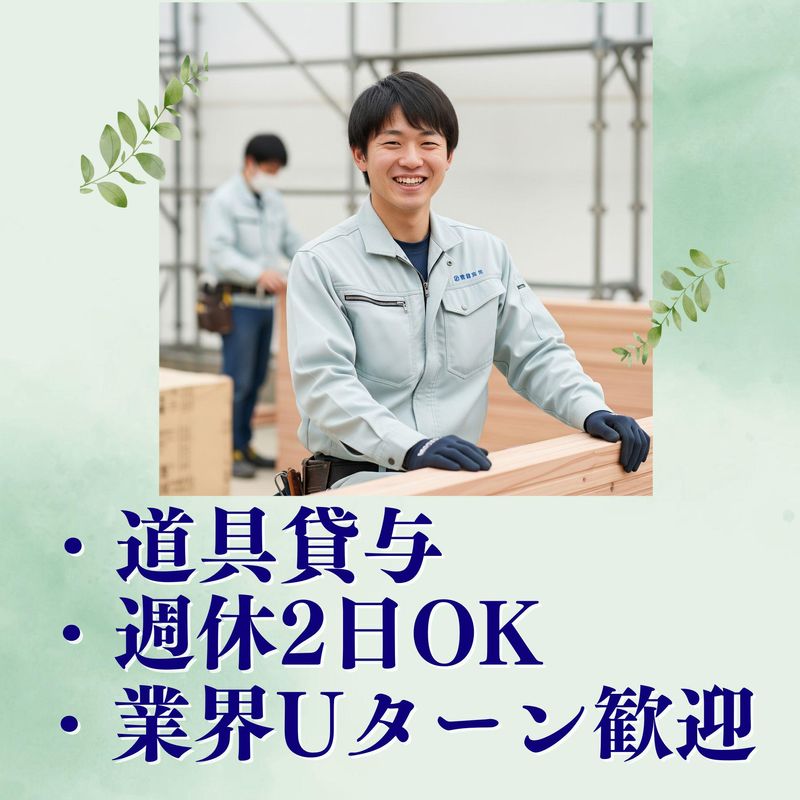 仕事内容 【この求人のポイント】 ✅DIY・モノづくり好き歓迎! ✅未経験OK!ゼロから育てます ✅道具・制服・社用車すべて貸与 ✅賞与年2回&交通費全額支給 ✅休みも取りやすい環境 ✅工具一式は会社で貸与! (本来100万円相当 ) 【具体的な仕事内容】 注文住宅・分譲住宅の 木造建築(大工)のお仕事です✨ 最初は専門的なことはやりません◎ 先輩のサポートからスタートします! ▼最初にお任せすること ・木材や資材を現場へ運ぶ ・作業で使う道具の準備・片付け ・作業中に出た木くずなどの清掃 →「見て覚える」ではなく、 簡単なことから一つずつ教えます! ▼慣れてきたら… 少しずつ作業にもチャレンジ! ・木材をサイズ通りにカット ・釘打ちやビス留め ・壁や床の下地づくりのサポート →最初は先輩と一緒に作業するので安心◎ ▼さらにステップアップすると… ・柱や梁の組み立て ・壁や床の施工 ・一部の工程を自分で担当 →気づけば「家づくり」に 関われるようになります! 【この仕事のポイント】 ◆初期費用ゼロでスタートできる ◆DIYや工作の延長で始められる ◆できることが増えるとしっかり評価 ◆一生使える“手に職”が身につく ◆形に残る仕事でやりがい抜群 【最後にメッセージ】 「大工って難しそう…」と 思う方も多いですが、 今いるスタッフもほとんどが 未経験からスタートです。 実はこの仕事、道具を一から揃えると 100万円ほどかかることもあります。 でも当社ならすべて貸与なので、 “お金をかけずに手に職”が叶います◎ 最初はできなくて当たり前。 道具の名前や使い方から、丁寧に教えます◎ 「ちょっとやってみたい」 その気持ちがあればOK! モノづくりが好きな方、 ぜひ応募をお待ちしています!!