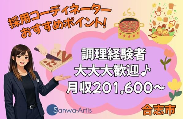 求めている人材 ✨調理業:経験者優遇 ✨料理が好きな方大歓迎 \こんな方歓迎!/ ■人の役に立ちたい ■調理のお仕事がしたい ■安定した職場で働きたい ■学歴不問 ■中卒、高卒、短大卒大歓迎 ■フリーター歓迎 ■20~50代スタッフ活躍中 ■ブランクあり歓迎